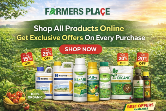 At FARMERS PLACE, we are committed to empowering farmers with high-quality agricultural solutions that drive productivity and sustainability. As a trusted name in agri-inputs, we offer a comprehensive range of products including insecticides, fungicides, herbicides, bactricides, crop nutrition, organic solutions, farming equipment, and certified seeds. Our goal is to support every stage of farming — from soil preparation to harvest — with scientifically formulated products that ensure healthy crop growth and maximum yield. With a deep understanding of Indian agriculture and the challenges farmers face, we focus on providing reliable, result-driven products that are safe for crops and the environment. Backed by expert knowledge and a farmer-first approach, FARMERS PLACE is not just a supplier, but a partner in your journey toward smarter, more efficient farming. Join thousands of farmers across India who trust us to protect their crops and boost their livelihoods.